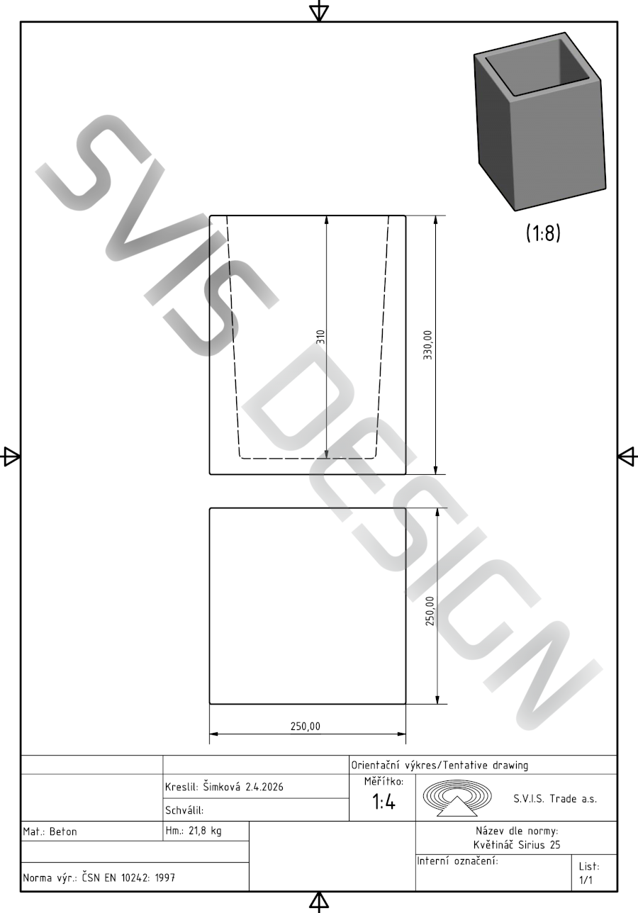 Květináč SIRIUS BASIC 25x25x33 cm - natural, bez dekoru, bez laku