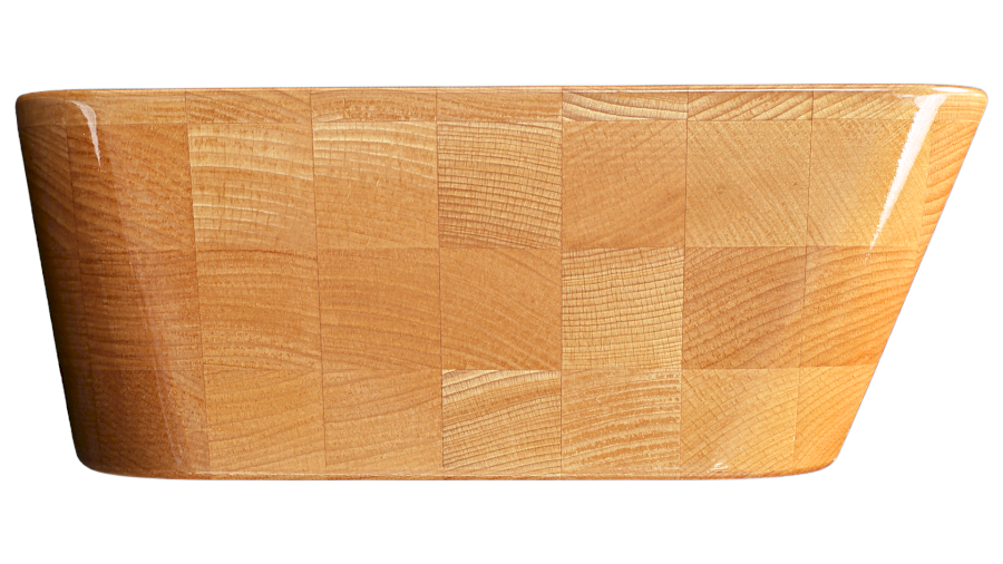 Drewniana umywalka nablatowa. Wykonany z solidnych klejonych listew. Powierzchnia zlewu jest dobrze przystosowana do codziennego kontaktu z wodą.