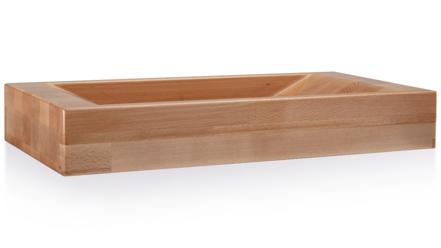 Drevené umývadlo na dosku. Vyrobené z masívnych lepených lamiel. Povrch umývadla je kvalitne ošetrený na každodenný styk s vodou.