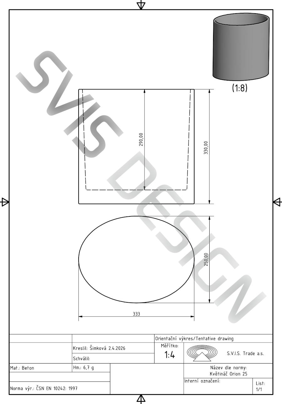 Květináč ORION BASIC 25x33x33cm - velmi tmavá šedá, bez dekoru, bez laku