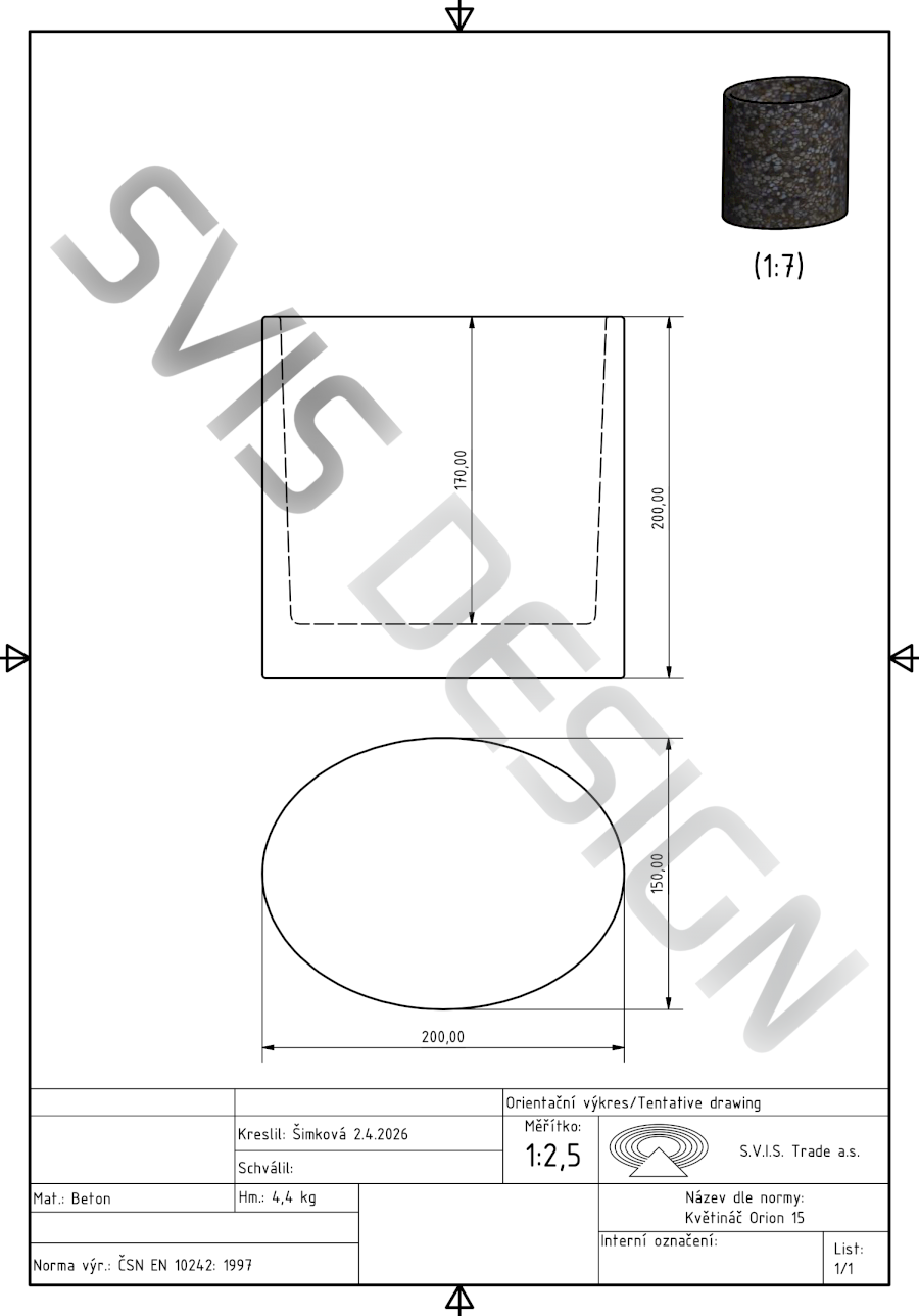 Květináč ORION BASIC 15x20x20 cm - natural, bez dekoru, bez laku