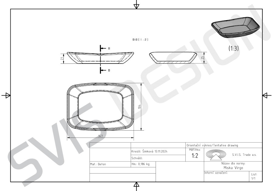 Miska wykonana jest według unikalnej receptury z materiału kompozytowego inspirowanego tradycyjnym betonem.