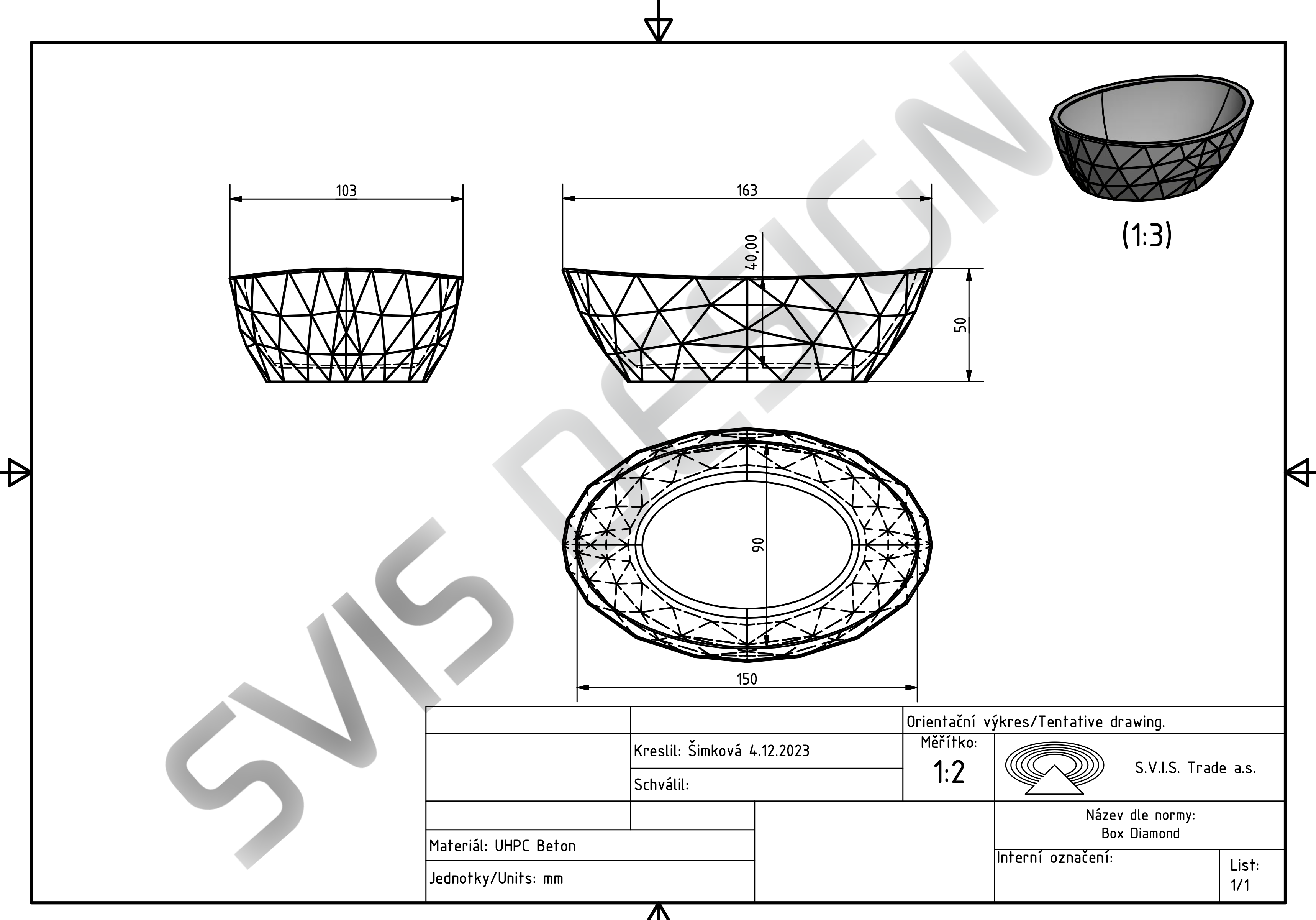 Szkatułka wykonana jest według unikalnej receptury z materiału kompozytowego inspirowanego tradycyjnym betonem.