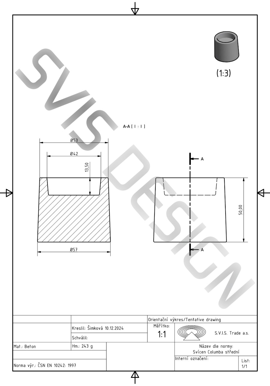 Svícen je vyroben podle jedinečné receptury z kompozitního materiálu inspirovaného tradičním betonem.